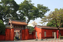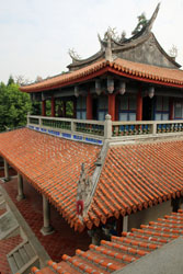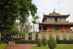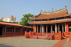 次に向かったのは孔子廟。台湾で最初に建てられた孔子廟で、当時は台湾初の最高学府としての役割も担っていたのだそうだ。敷地の東側が今の学校にあたる「国学」、西側が孔子を祀る「文廟」という構造になっている。 |