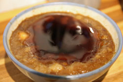 小腹が空いてきたので、「富盛號」で台南名物の碗粿を。初めて食べる碗粿。どんなものなのか想像もつかなかったのだが、お米をすりつぶして蒸し上げたものなのだそうだ。小ぶりのご飯茶碗くらいの大きさなので、食べ歩きにはぴったり。 |