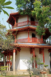 食後はまず、 赤崁樓 へ。ここはもともとは当時台湾を統治していたオランダ人が建てた赤レンガの城だった。1661年に鄭成功によってオランダを駆逐し、現在の 赤崁樓と呼ばれるようになったが、清朝の時代には反乱や天災によって崩壊してしまったのだそうだ。残った土台に建てられたのが現在の文昌閣で、学問の神様である魁星爺が祀られている。また、その手前にある海神廟はその11年前に中国伝統の様式で造られた楼閣なのだそうだ。 |