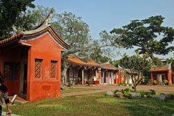 本日最後の観光は延平郡王祠。日本人の母を持つ鄭成功とその母らが祀られている。鄭成功は台南をオランダから解放した功績により、今でも英雄として崇められている。そういえば台湾には「成功」という名前のつく通りや施設がたくさんあるが、これは全て鄭成功の名に由来するのだそうだ。 |