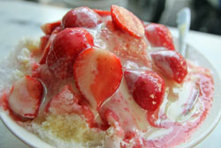 まだお腹に余裕があったので「莉莉水果店」の苺のかき氷を食べることにした。結構なボリュームだが、苺のソースとコンデンスミルクに加え、さっぱり味のソースがかかっているのでしっかり完食できた。 |