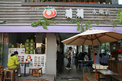 | 「莉莉水果店」 | 新鮮な果物が山積みにされています | 苺のかき氷(60元・約192円) |