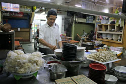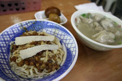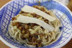 小吃食べ歩き第2弾は「福記肉圓」の肉圓。台北の夜市で食べた肉圓とは見た目も味も全然違うのにはびっくり。台北の肉圓は揚げてあり、台南の物は蒸してあるのだそうだ。 |